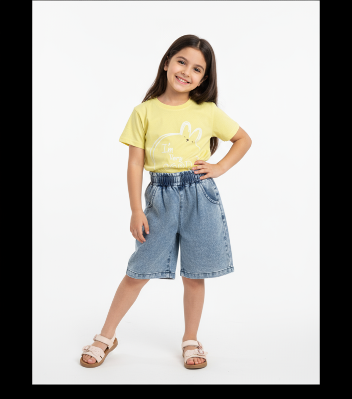 ست تیشرت آستین کوتاه و شلوارک دخترانه مدل خرگوش رنگ زرد