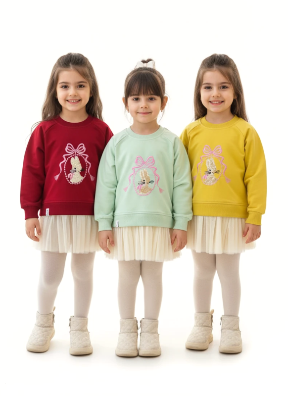 بلوز آستین بلند پاستلی مدل خرسی رنگ زرد