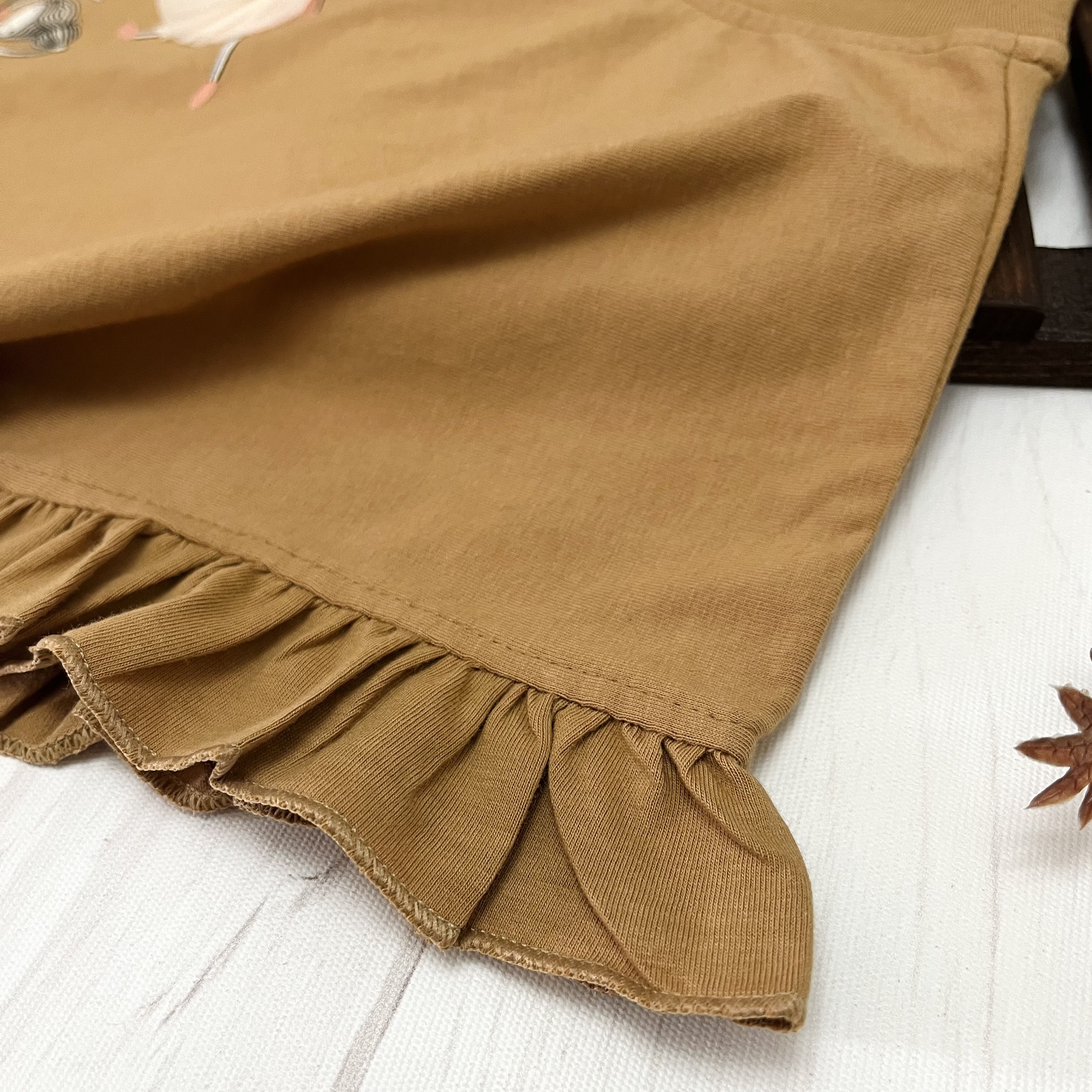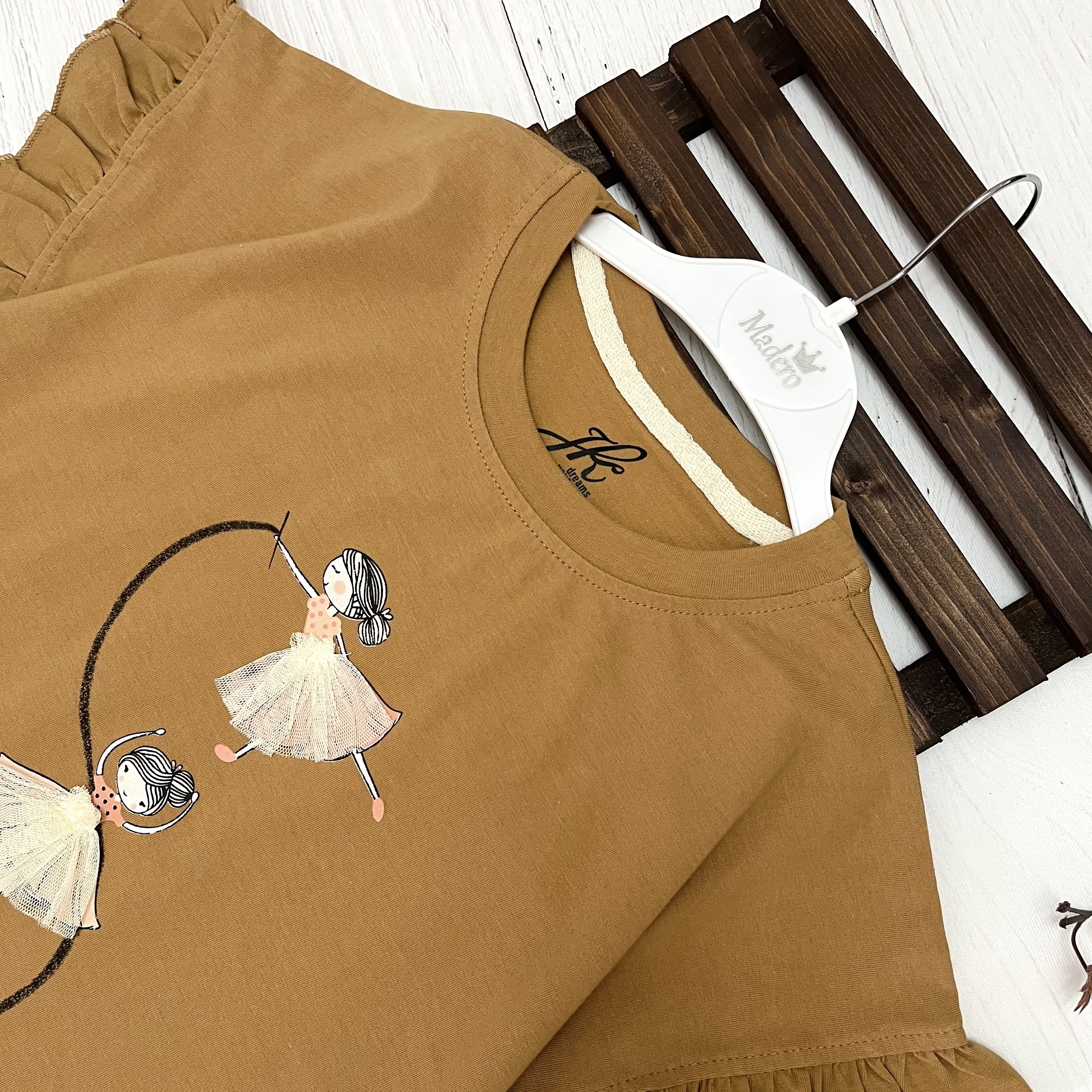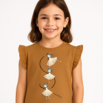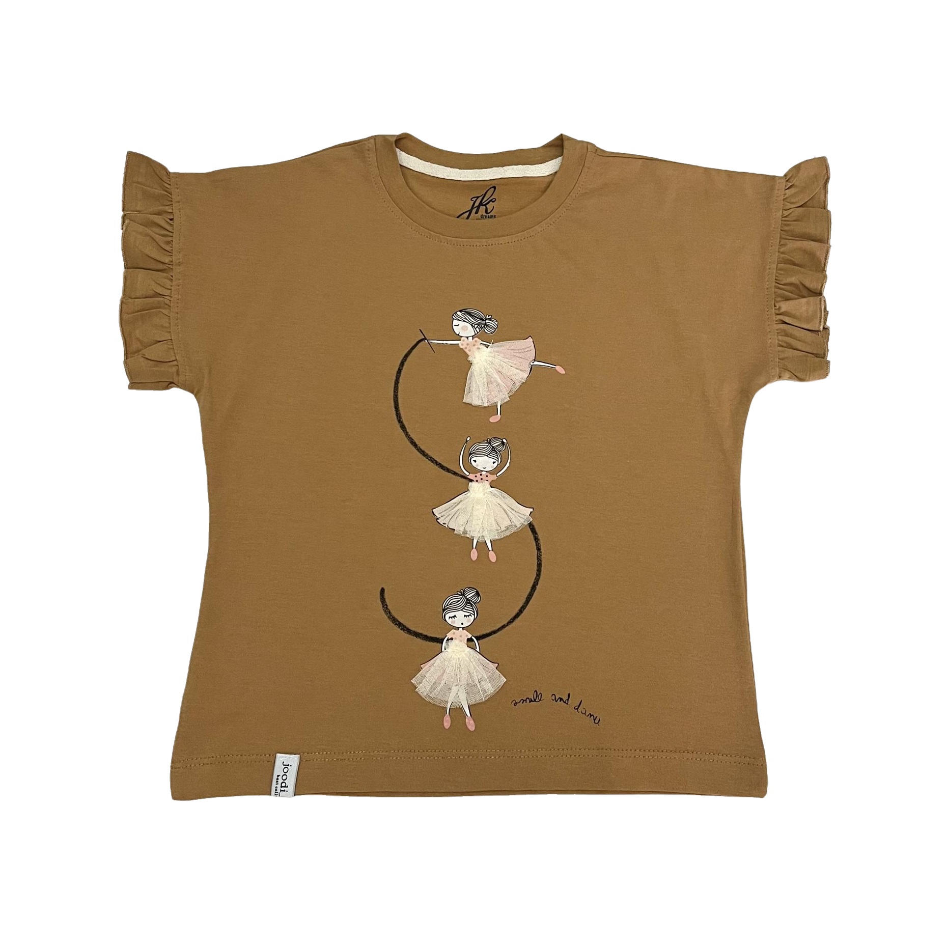 تیشرت آستین کوتاه دخترانه مدل بالرین رنگ نسکافه ای