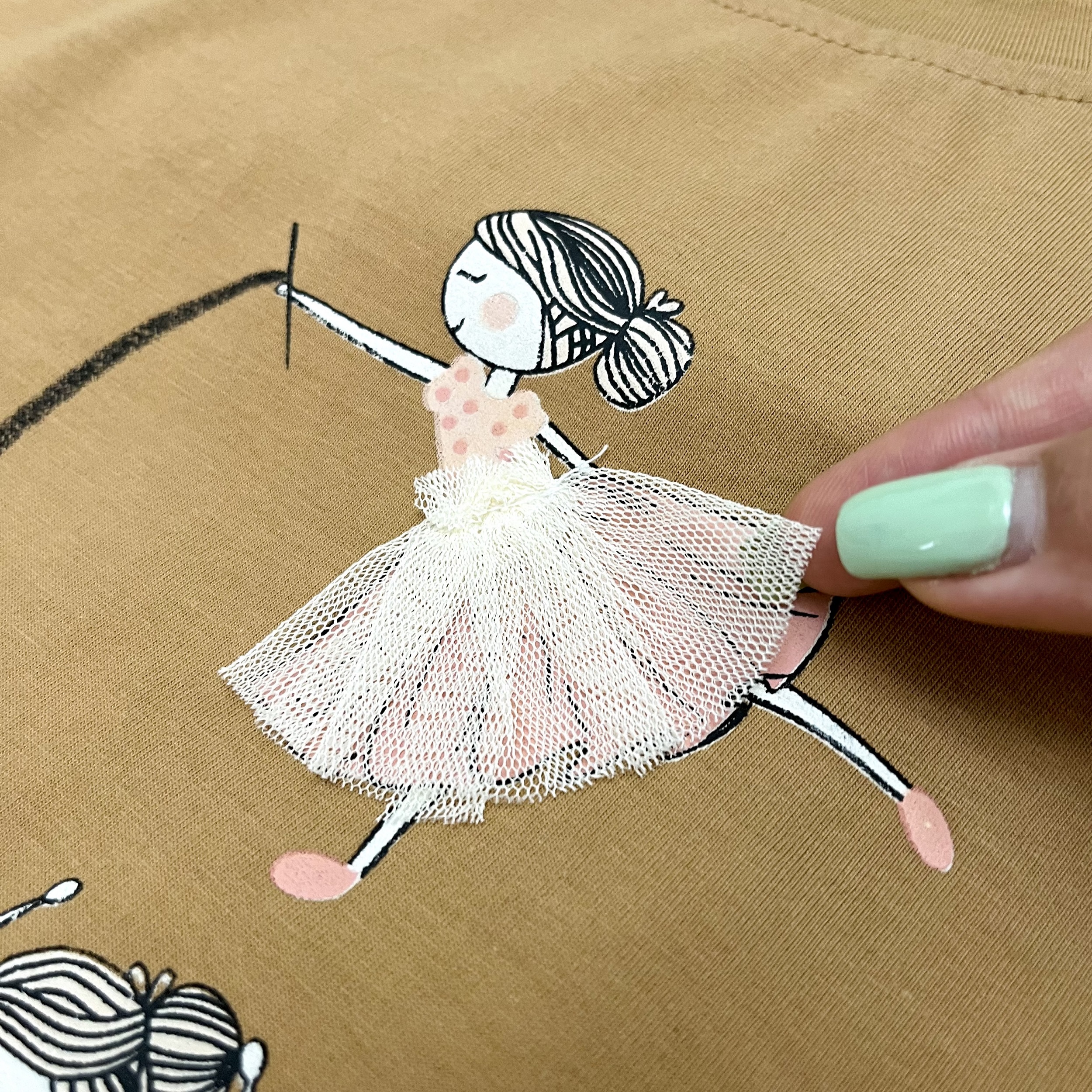 تیشرت تک دخترانه آستین کوتاه مدل بالرین ، از جنس نخ پنبه بسیار با کیفیت تولید گردیده و هیچگونه حساستی برای پوست ایجاد نمی کند. این تیشرت مناسب استفاده به عنوان لباس بیرونی و مهمانی نیز می باشد.