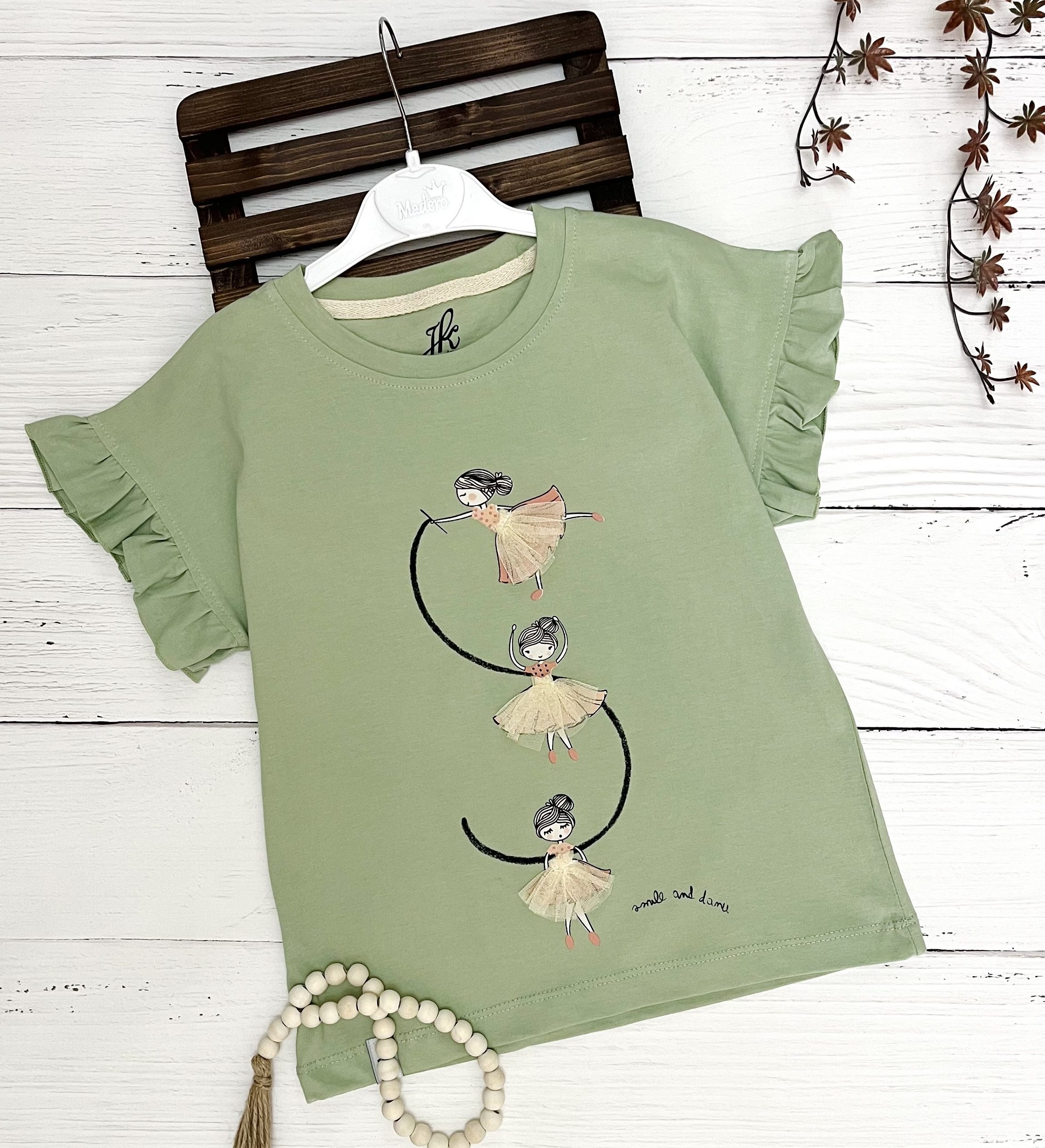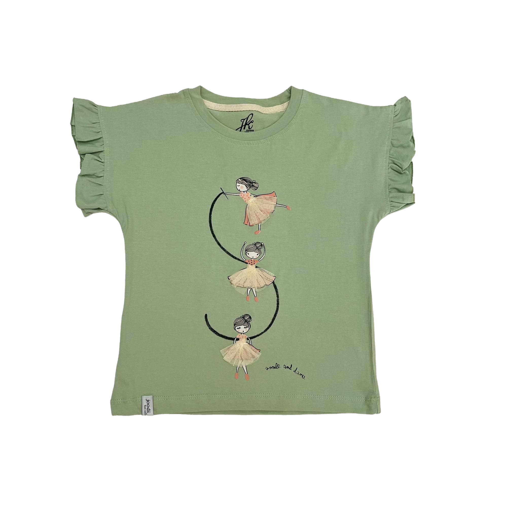 تیشرت آستین کوتاه دخترانه مدل بالرین رنگ سبز