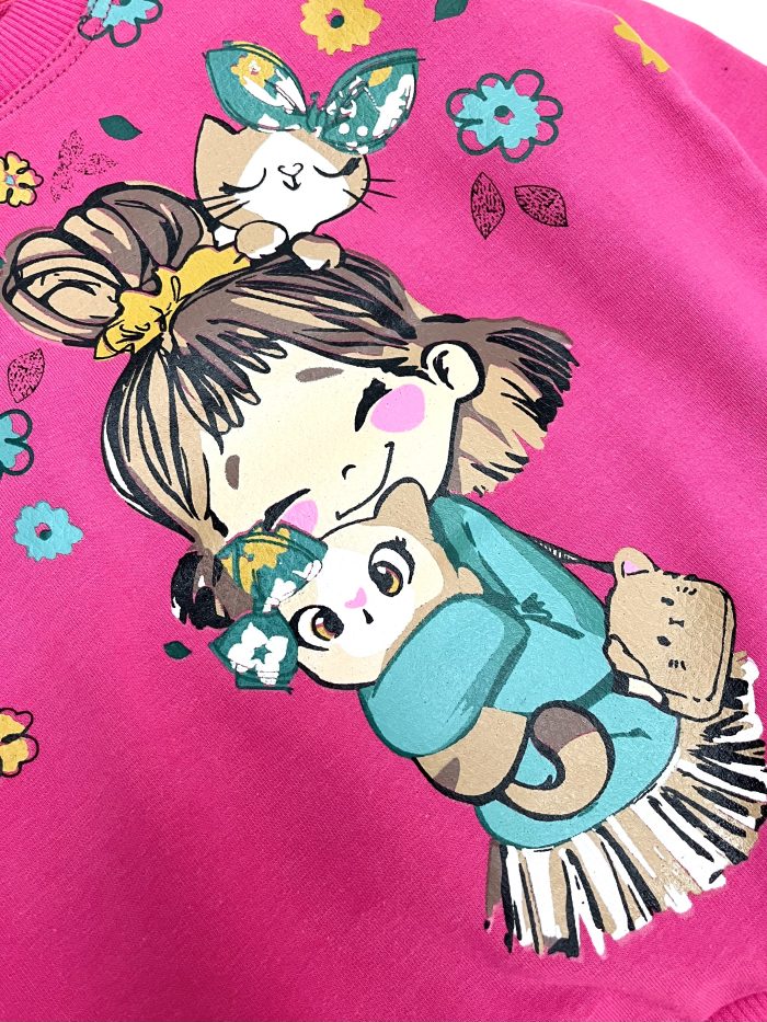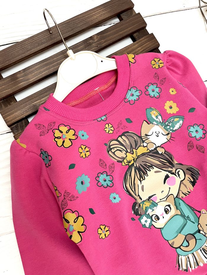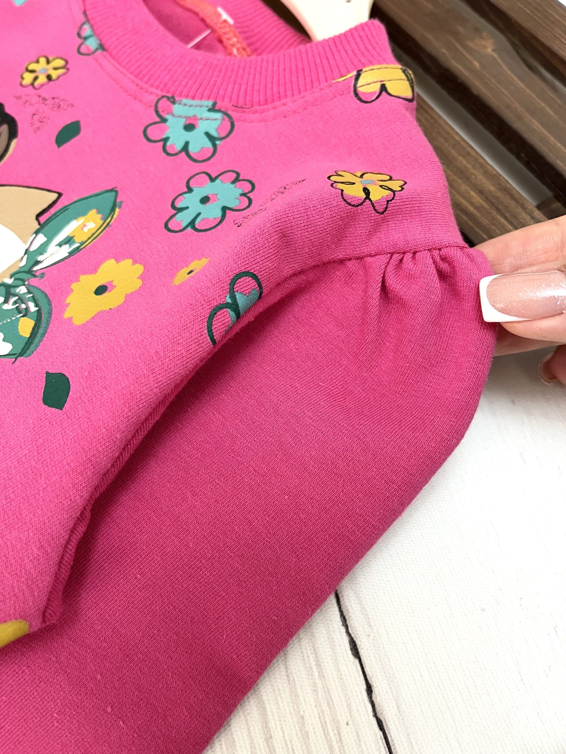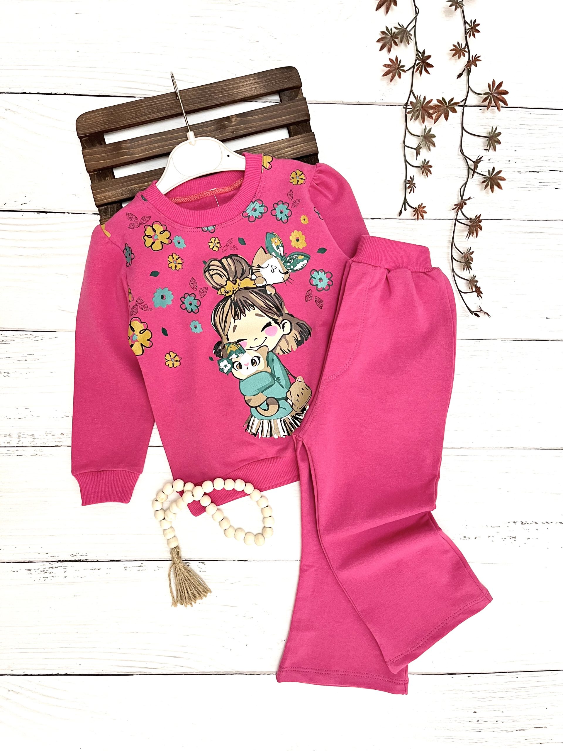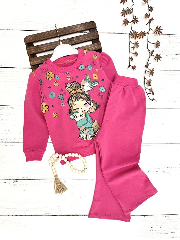 ست دخترانه شامل بلوز و شلوار با طراحی فانتزی.