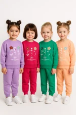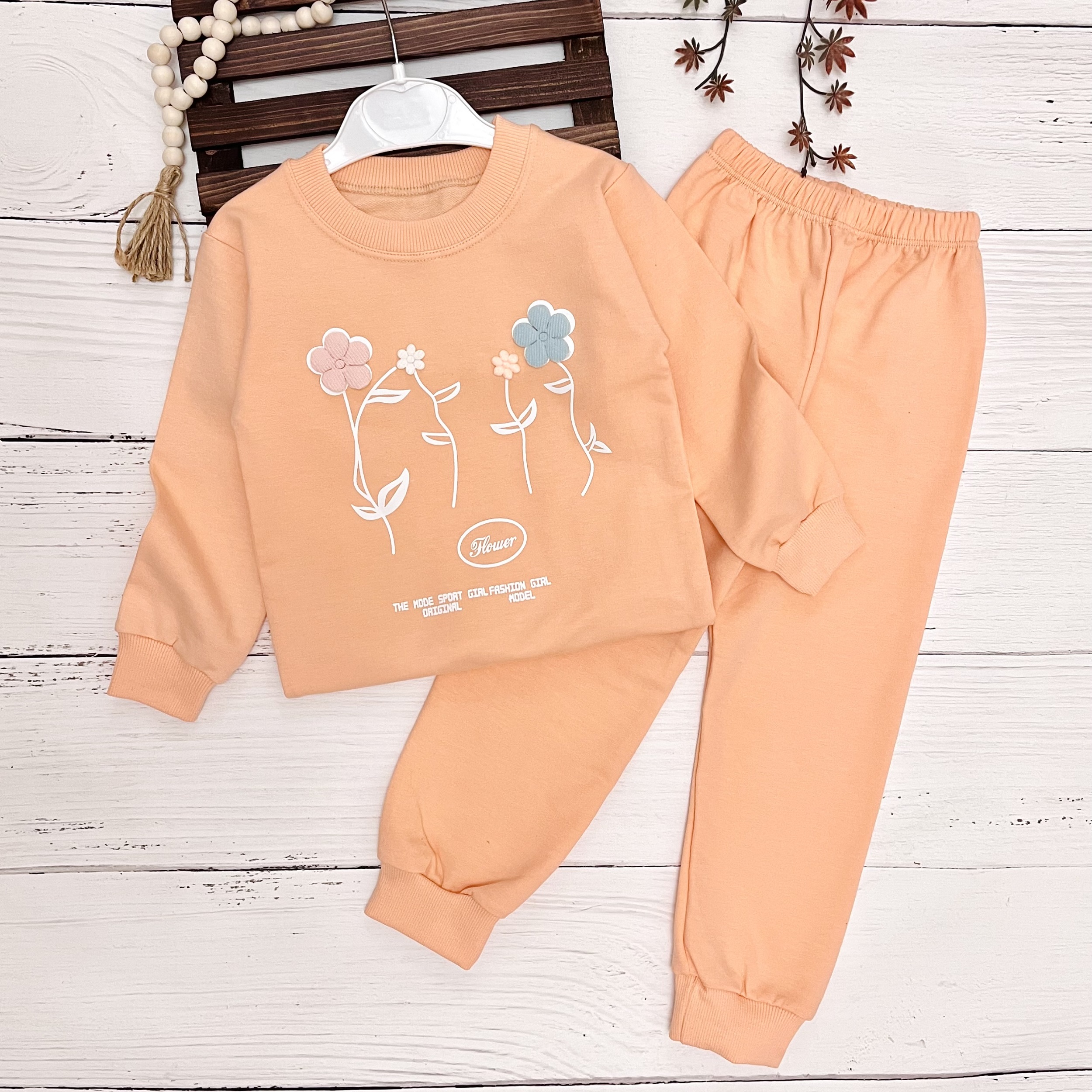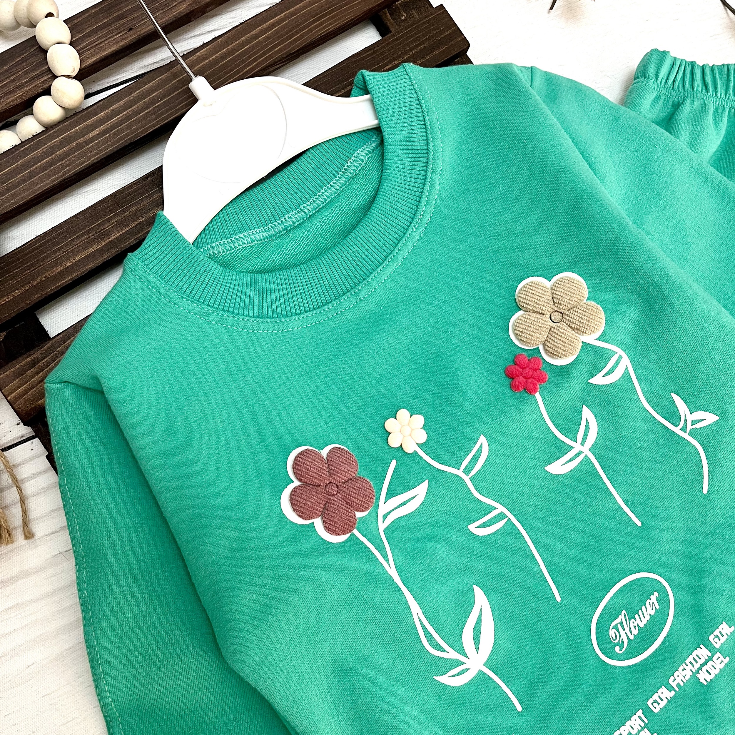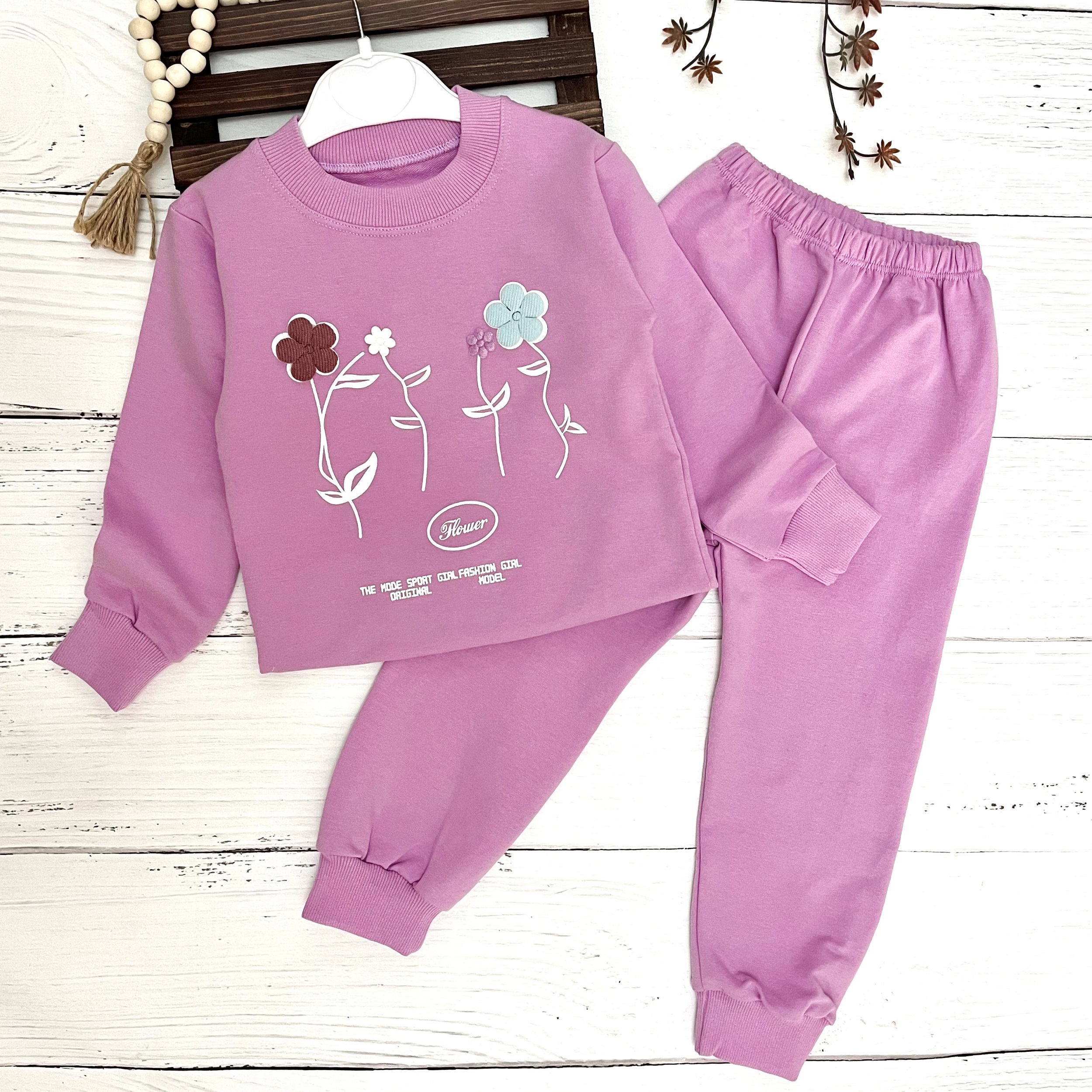 ست بلوز وشلوار دخترانه با طرح فلاور ، از جنس پارچه نخ پنبه با طراحی زیبا تولید گردیده است.