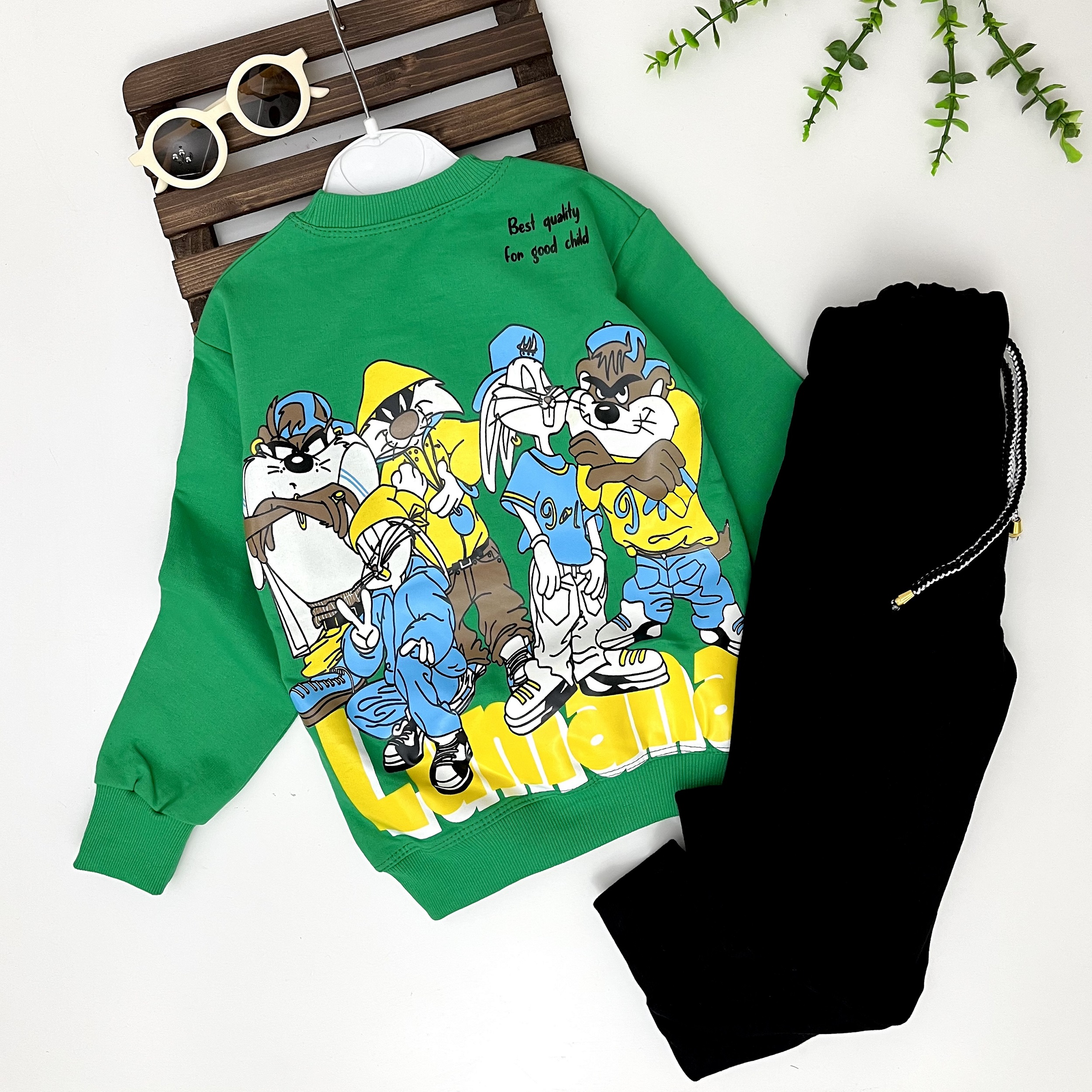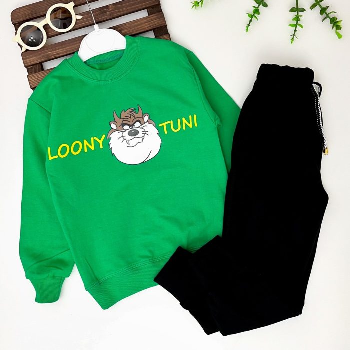 ست لباس پسرانه طرح لونی ، از جنس پارچه پنبه سوپر دو نخ بسیار باکیفیت با چاپ پلاستیزول درجه یک تولید گردیده است. این لباس با توجه به طراحی و کیفیت پارچه و طرح مناسب استفاده به عنوان لباس بیرونی نیز می باشد.