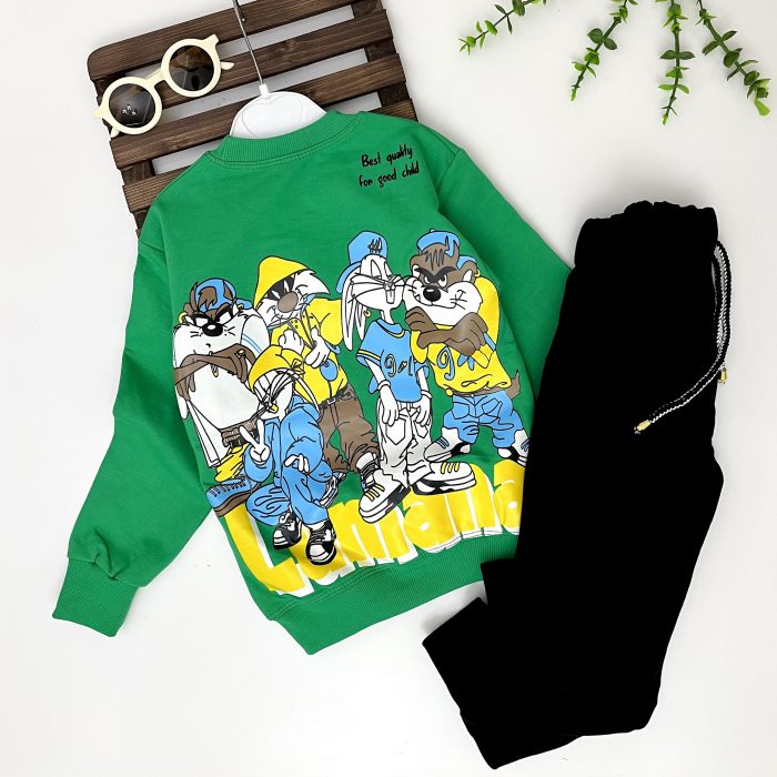 ست بلوز و شلوار پسرانه مدل لونی رنگ سبز