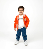 ست سه تکه بچگانه وارداتی(چینی) شامل بلوز نخ پنبه،شلوار جین و شوییشرت کتان با دوخت ظریف می باشد.