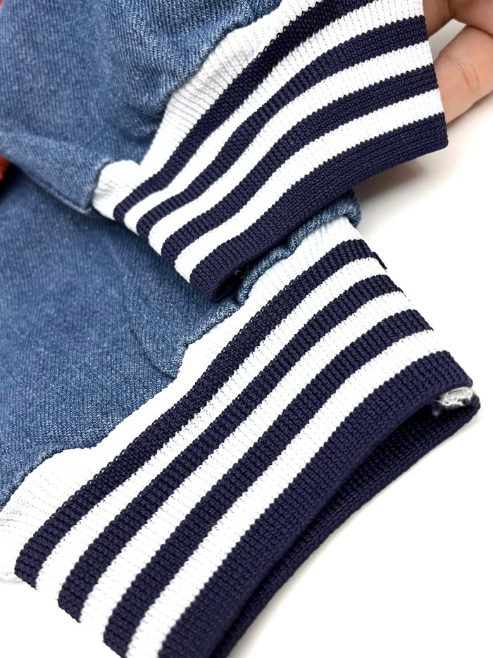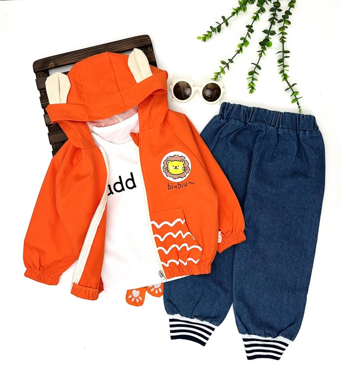 ست سه تکه بچگانه وارداتی(چینی) شامل بلوز نخ پنبه،شلوار جین و شوییشرت کتان با دوخت ظریف می باشد.