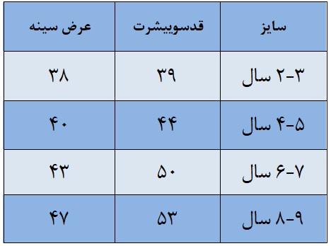 جهت انتخاب دقیق تر لطفا حتما به جدول سایزبندی دقت شود.