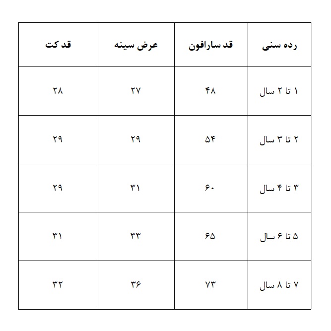 جهت انتخاب دقیق تر لطفا حتما به جدول سایبزبندی دقت کنید.